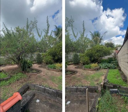 * 1 área grande nos fundos com espaço para construir sua área de lazer ou uma belíssima área gourmet, além de um espaço em terra com várias árvores frutíferas