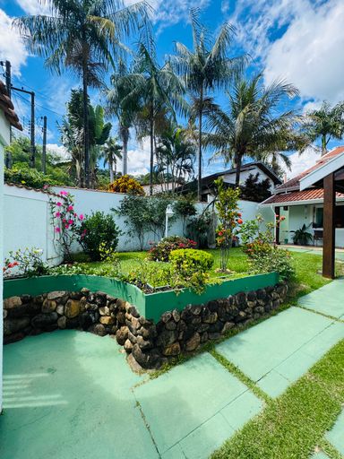 * 1 área de jardim muito bem cuidado na frente da casa